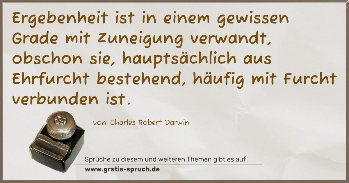 Ergebenheit ist in einem gewissen Grade mit Zuneigung verwandt, obschon sie, hauptsächlich aus Ehrfurcht bestehend, häufig mit Furcht verbunden ist.