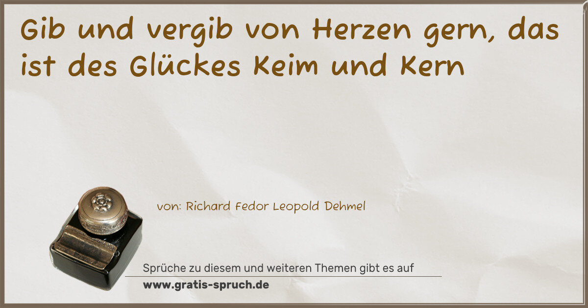 Gib und vergib von Herzen gern, das ist des Glückes Keim und Kern