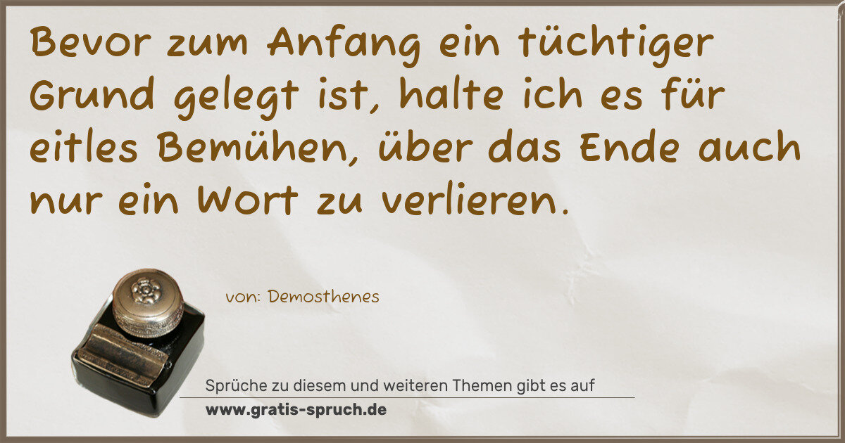 Bevor zum Anfang ein tüchtiger Grund gelegt ist, halte ich es für eitles Bemühen, über das Ende auch nur ein Wort zu verlieren.