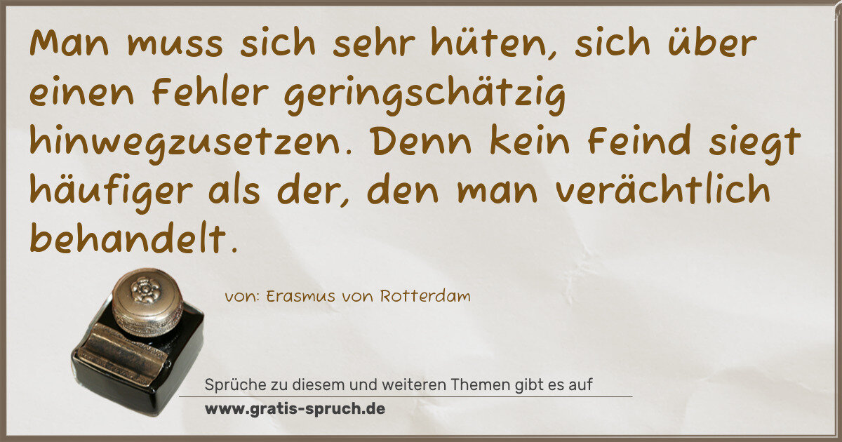 Man muss sich sehr hüten, sich über einen Fehler geringschätzig hinwegzusetzen. Denn kein Feind siegt häufiger als der, den man verächtlich behandelt.