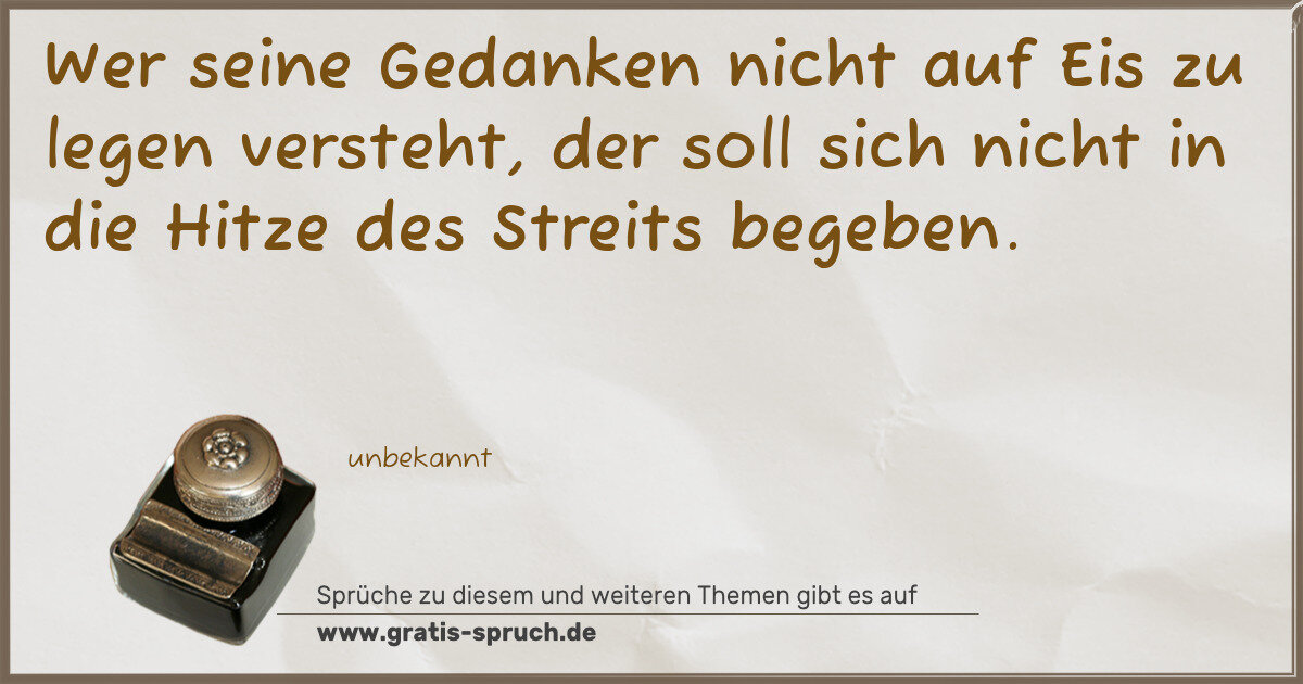 Wer seine Gedanken nicht auf Eis zu legen versteht, der soll sich nicht in die Hitze des Streits begeben.