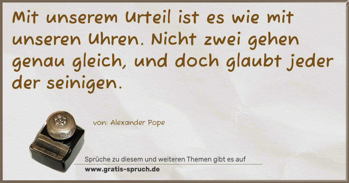 Mit unserem Urteil ist es wie mit unseren Uhren. Nicht zwei gehen genau gleich, und doch glaubt jeder der seinigen.