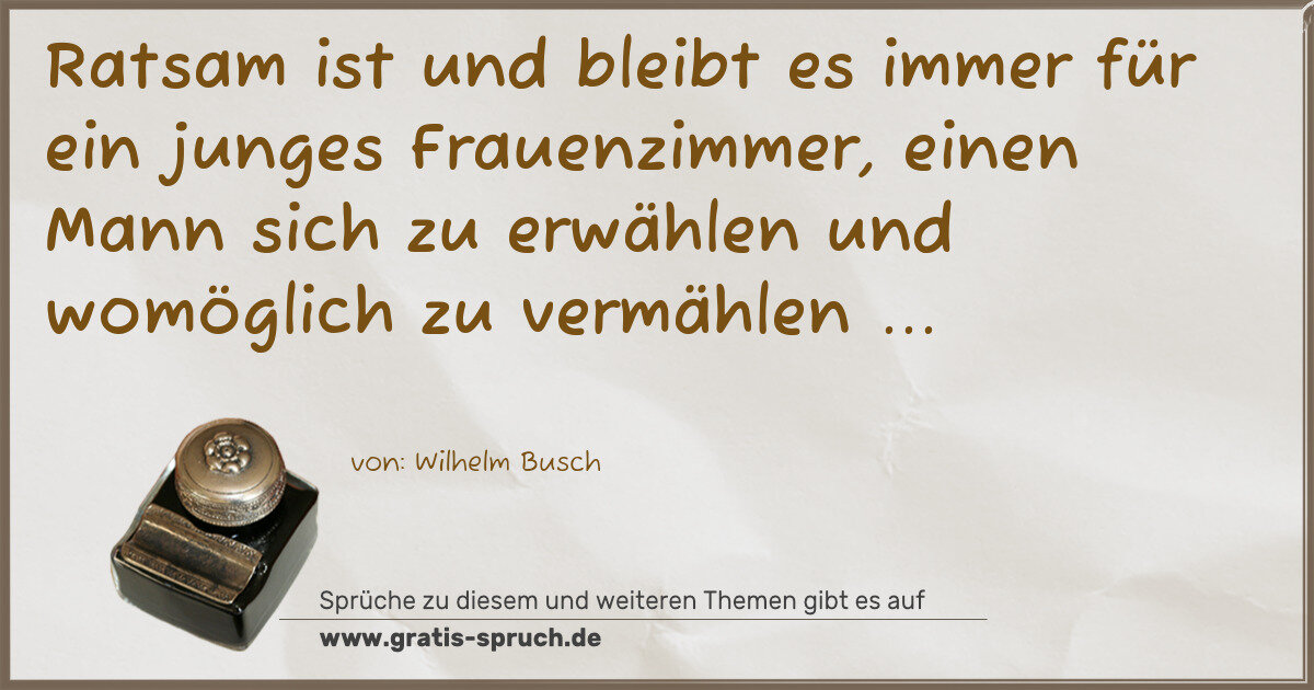 Ratsam ist und bleibt es immer für ein junges Frauenzimmer, einen Mann sich zu erwählen und womöglich zu vermählen ...