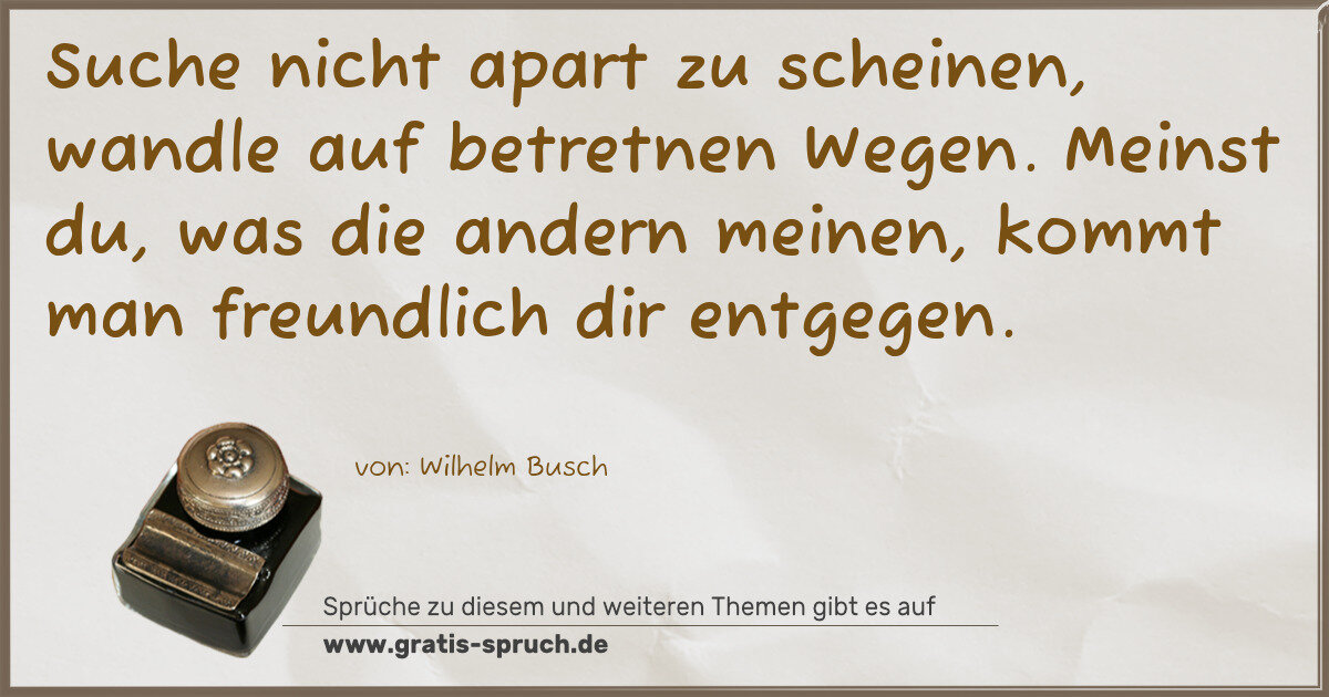 Suche nicht apart zu scheinen, wandle auf betretnen Wegen. Meinst du, was die andern meinen, kommt man freundlich dir entgegen.