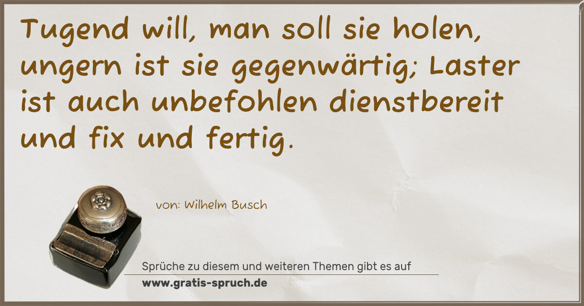 Tugend will, man soll sie holen, ungern ist sie gegenwärtig; Laster ist auch unbefohlen dienstbereit und fix und fertig.