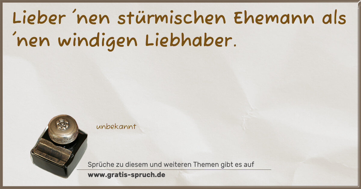 Lieber 'nen stürmischen Ehemann als 'nen windigen Liebhaber.