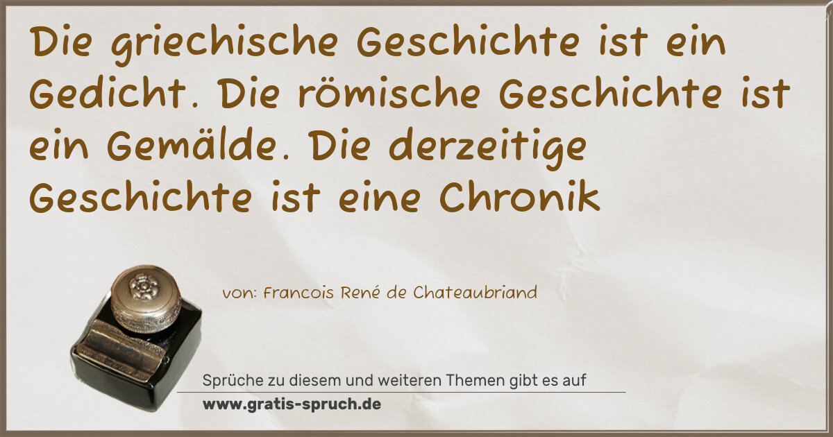 Die griechische Geschichte ist ein Gedicht. Die römische Geschichte ist ein Gemälde. Die derzeitige Geschichte ist eine Chronik
