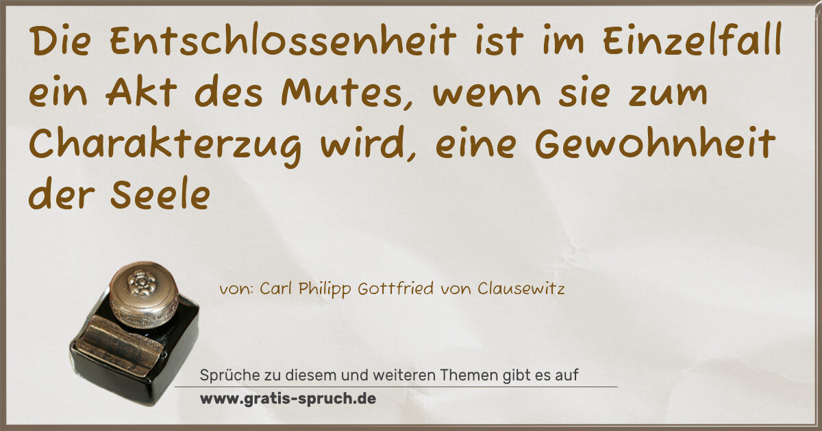 Die Entschlossenheit ist im Einzelfall ein Akt des Mutes, wenn sie zum Charakterzug wird, eine Gewohnheit der Seele