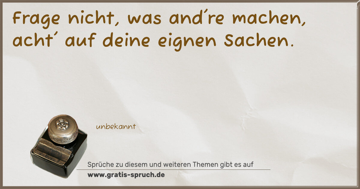 Frage nicht, was and're machen, acht' auf deine eignen Sachen.