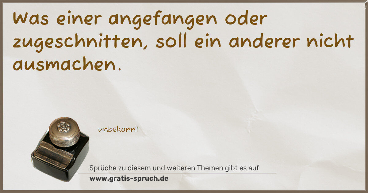 Was einer angefangen oder zugeschnitten, soll ein anderer nicht ausmachen.