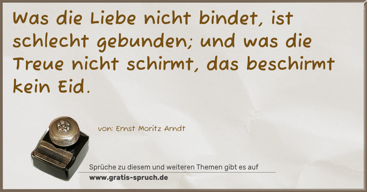Was die Liebe nicht bindet, ist schlecht gebunden; und was die Treue nicht schirmt, das beschirmt kein Eid.