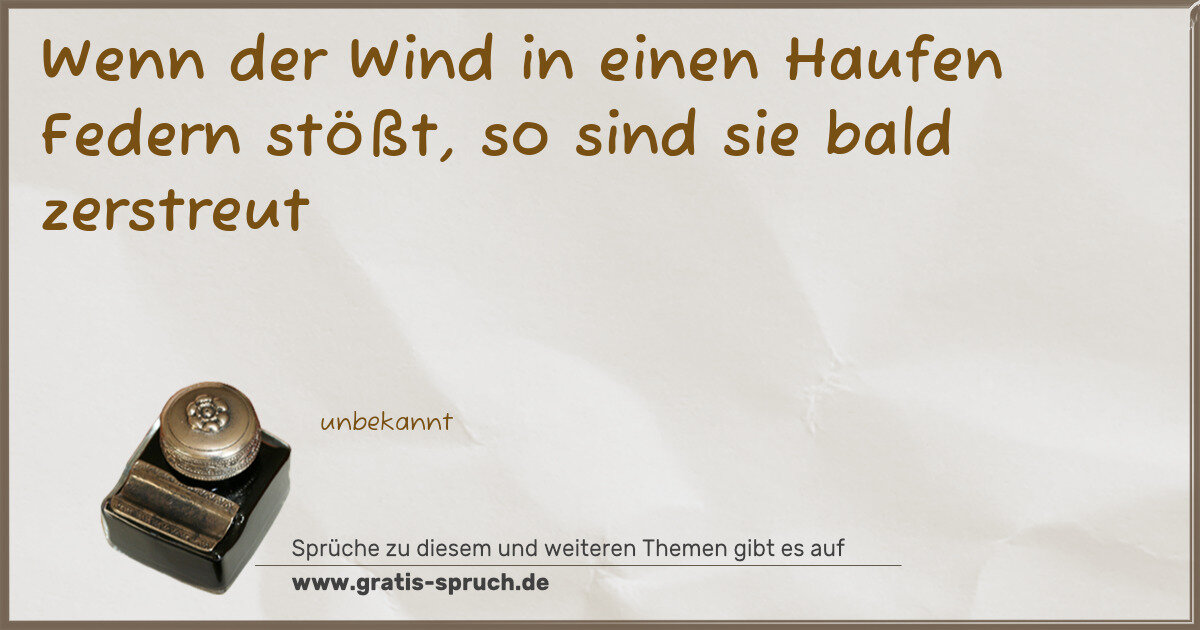Wenn der Wind in einen Haufen Federn stößt, so sind sie bald zerstreut