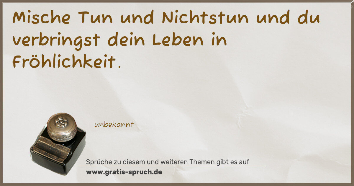 Mische Tun und Nichtstun und du verbringst dein Leben in Fröhlichkeit.