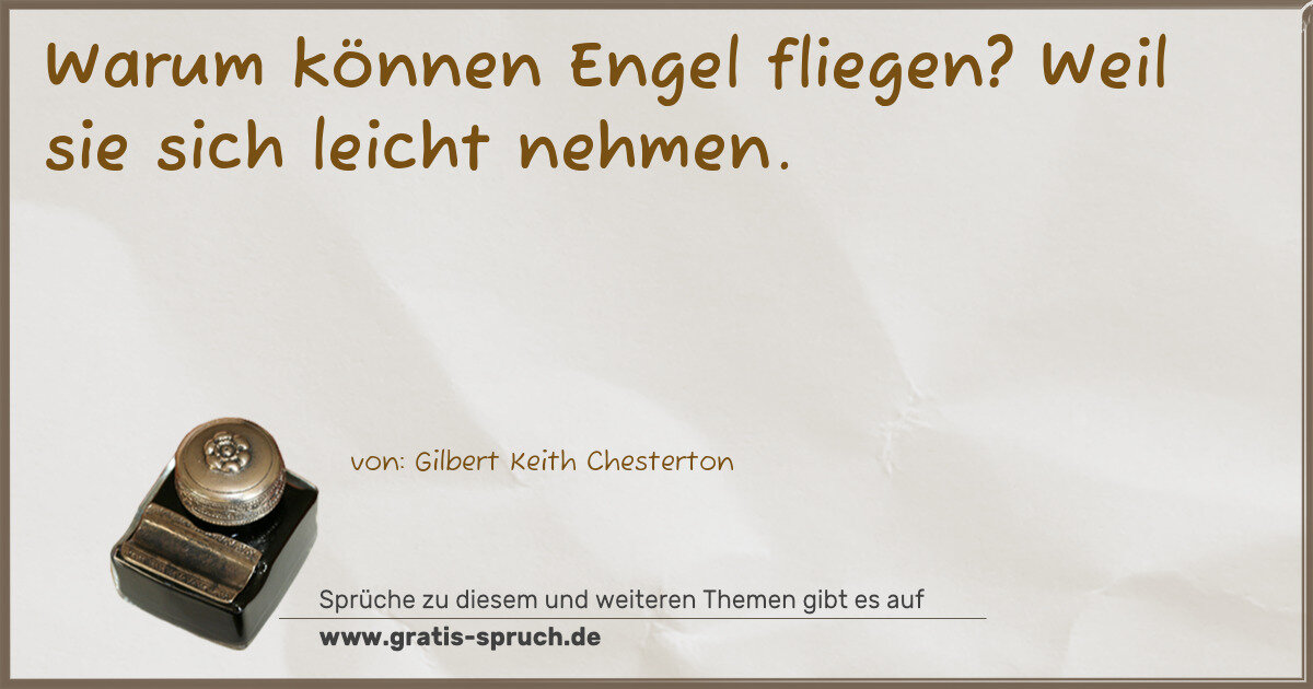 Warum können Engel fliegen? Weil sie sich leicht nehmen.