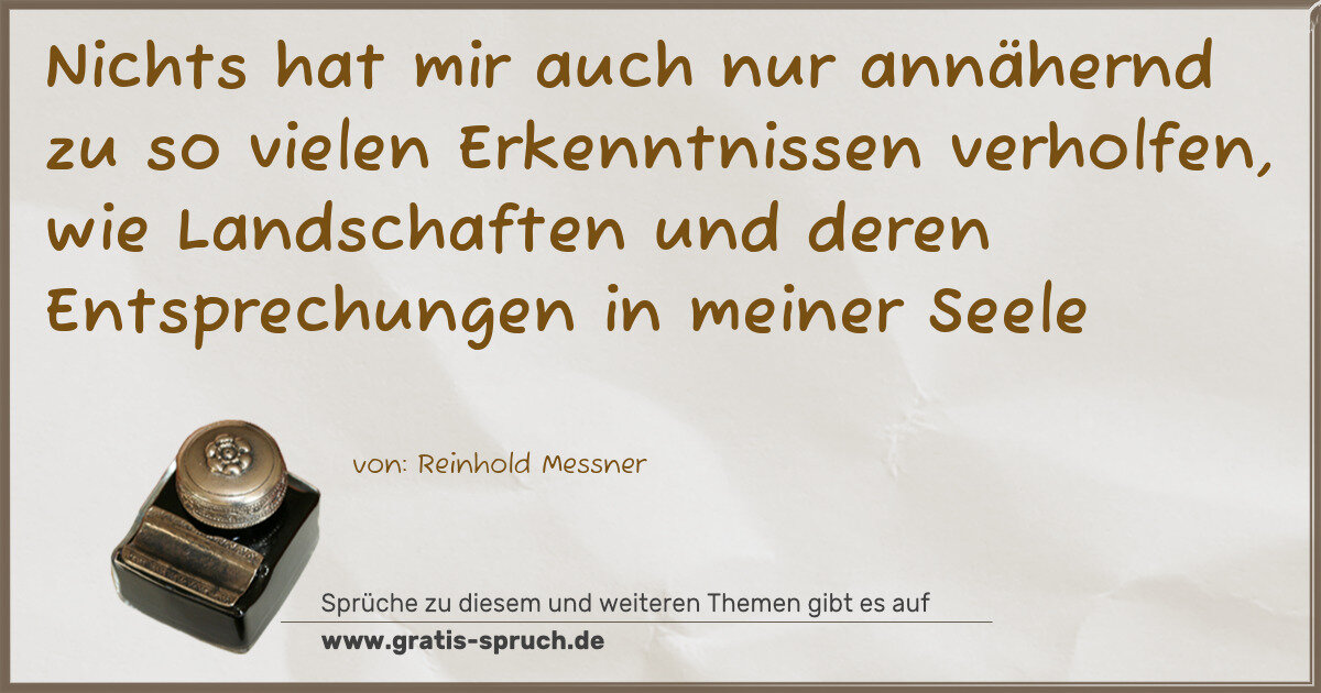 Nichts hat mir auch nur annähernd zu so vielen Erkenntnissen verholfen, wie Landschaften und deren Entsprechungen in meiner Seele