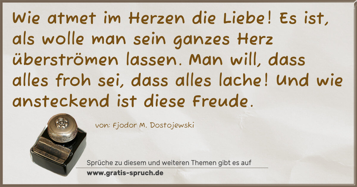 Wie atmet im Herzen die Liebe! Es ist, als wolle man sein ganzes Herz überströmen lassen. Man will, dass alles froh sei, dass alles lache! Und wie ansteckend ist diese Freude.