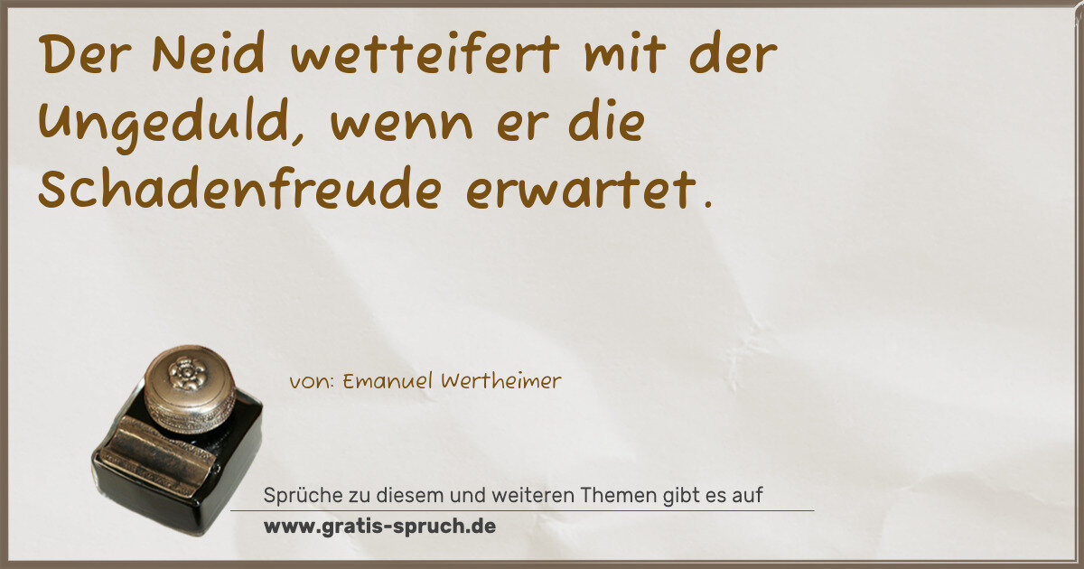 Der Neid wetteifert mit der Ungeduld, wenn er die Schadenfreude erwartet.