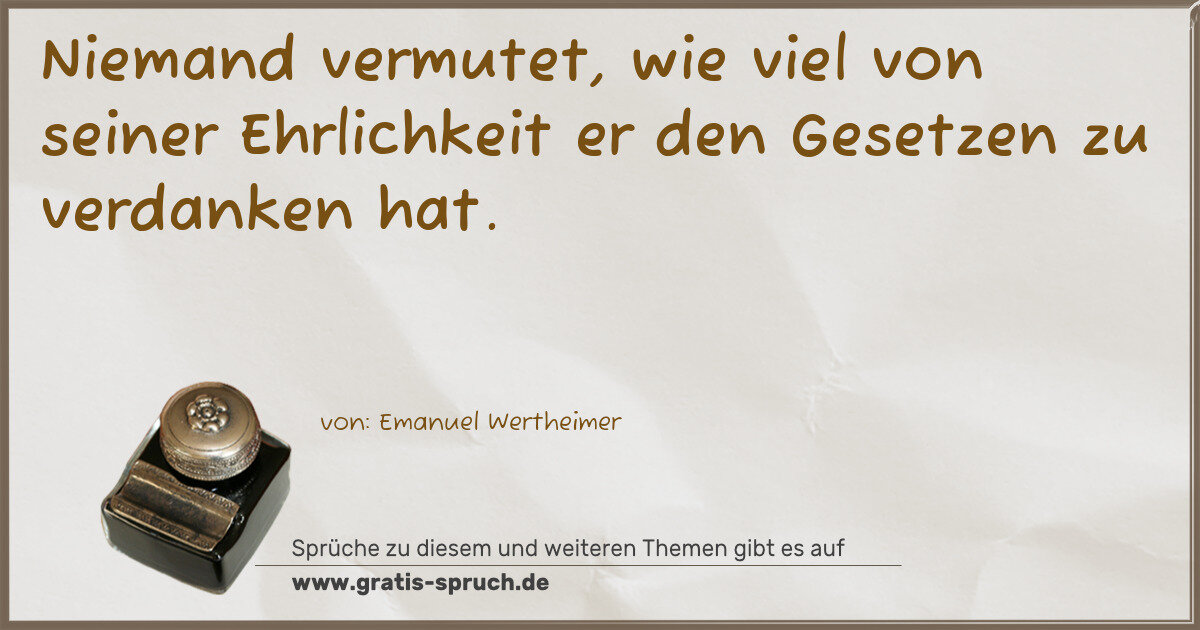 Niemand vermutet, wie viel von seiner Ehrlichkeit er den Gesetzen zu verdanken hat.