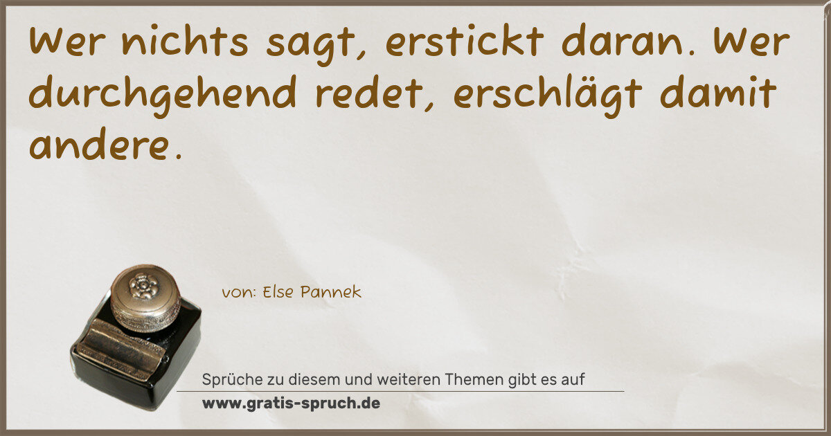 Wer nichts sagt, erstickt daran. Wer durchgehend redet, erschlägt damit andere.