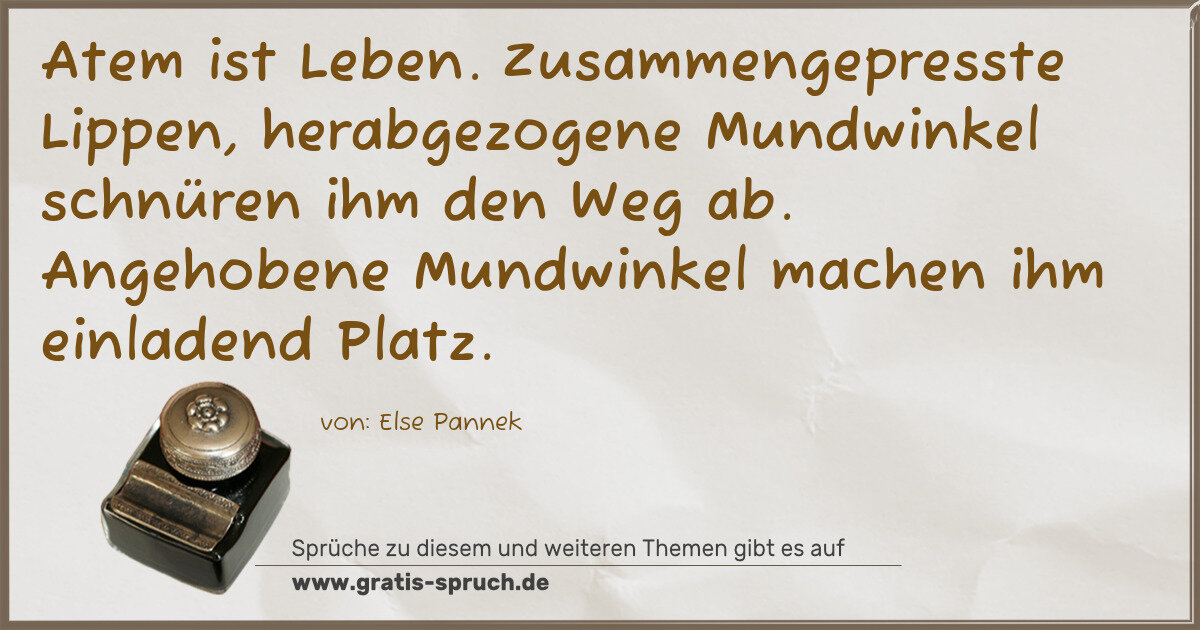 Atem ist Leben. Zusammengepresste Lippen, herabgezogene Mundwinkel schnüren ihm den Weg ab. Angehobene Mundwinkel machen ihm einladend Platz.