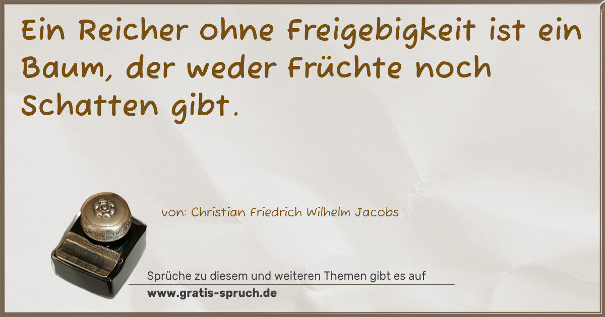 Ein Reicher ohne Freigebigkeit ist ein Baum, der weder Früchte noch Schatten gibt.