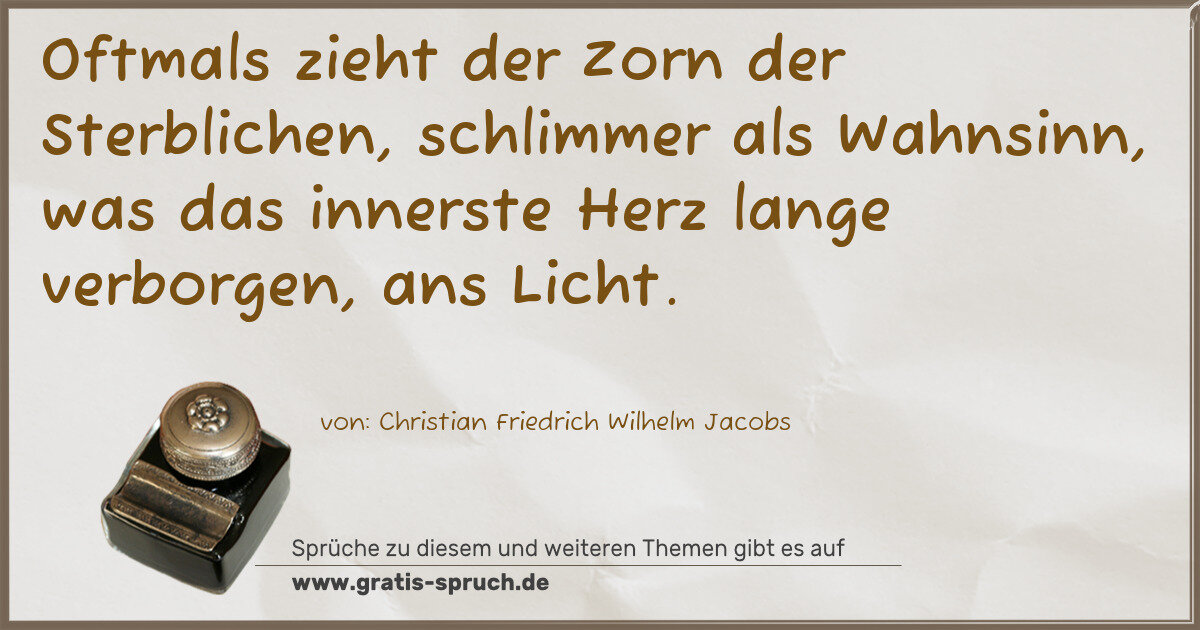 Oftmals zieht der Zorn der Sterblichen, schlimmer als Wahnsinn, was das innerste Herz lange verborgen, ans Licht.