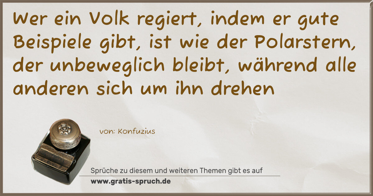Wer ein Volk regiert, indem er gute Beispiele gibt, ist wie der Polarstern, der unbeweglich bleibt, während alle anderen sich um ihn drehen