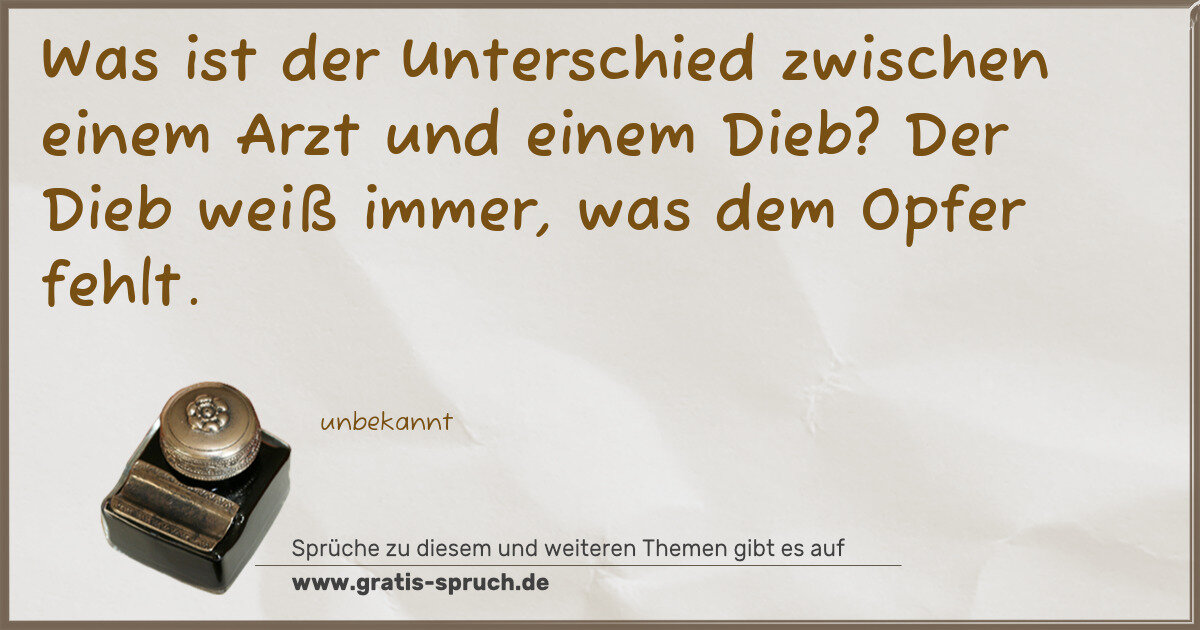 Was ist der Unterschied zwischen einem Arzt und einem Dieb? Der Dieb weiß immer, was dem Opfer fehlt.
