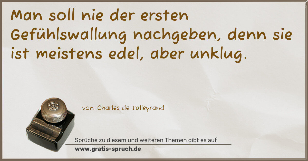 Man soll nie der ersten Gefühlswallung nachgeben, denn sie ist meistens edel, aber unklug.