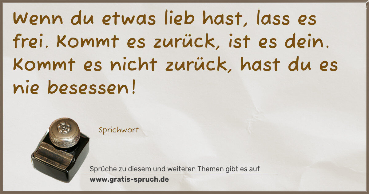 Wenn du etwas lieb hast, lass es frei. Kommt es zurück, ist es dein. Kommt es nicht zurück, hast du es nie besessen!