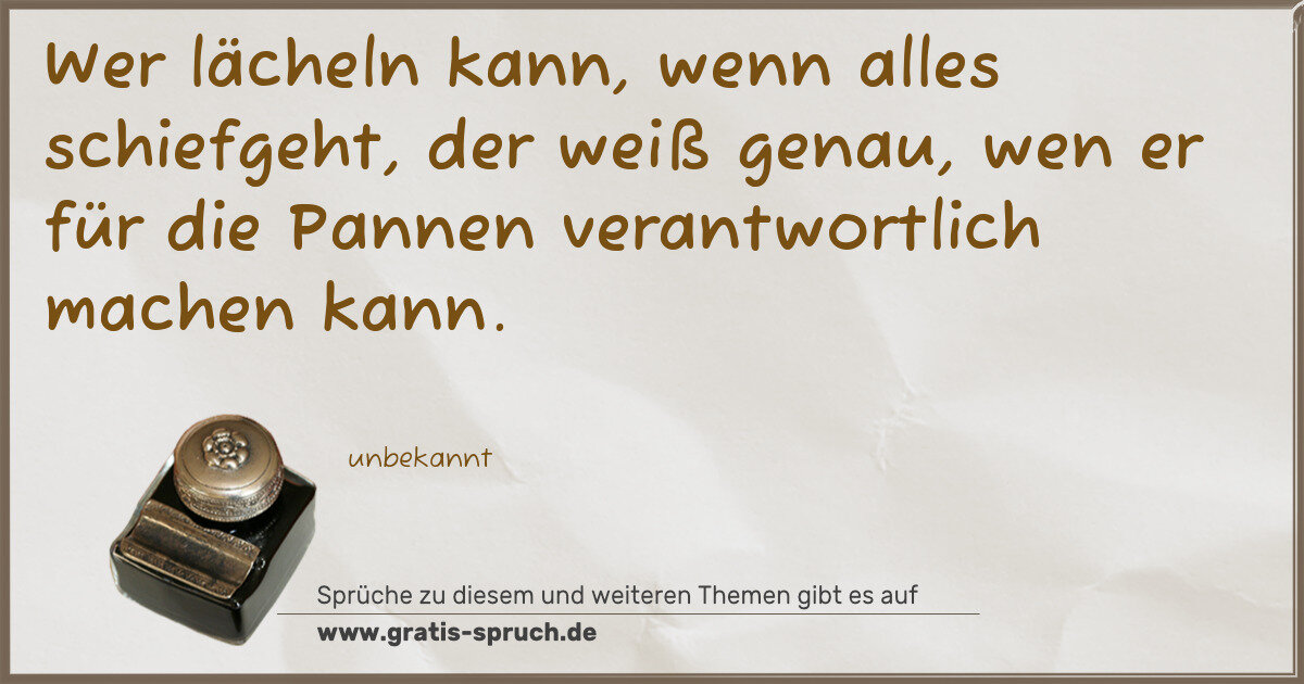 Wer lächeln kann, wenn alles schiefgeht, der weiß genau, wen er für die Pannen verantwortlich machen kann.