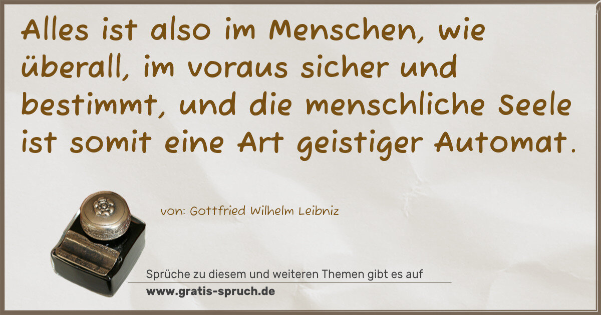 Alles ist also im Menschen, wie überall, im voraus sicher und bestimmt, und die menschliche Seele ist somit eine Art geistiger Automat.