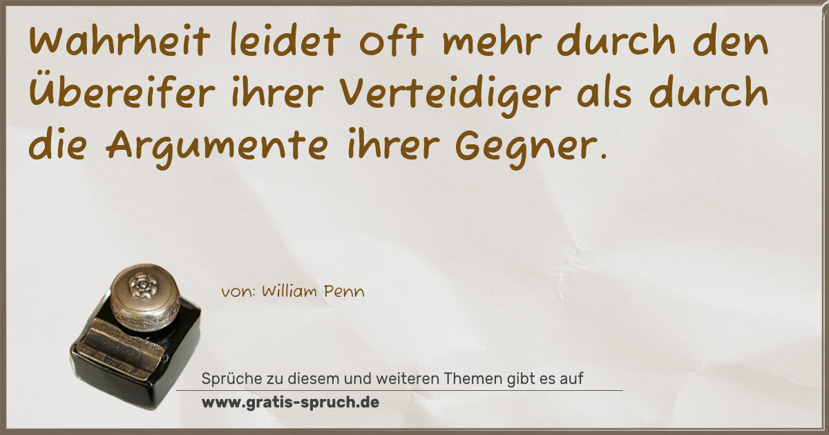 Wahrheit leidet oft mehr durch den Übereifer ihrer Verteidiger als durch die Argumente ihrer Gegner.