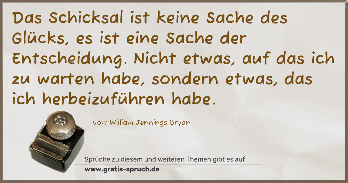 Das Schicksal ist keine Sache des Glücks, es ist eine Sache der Entscheidung. Nicht etwas, auf das ich zu warten habe, sondern etwas, das ich herbeizuführen habe.
