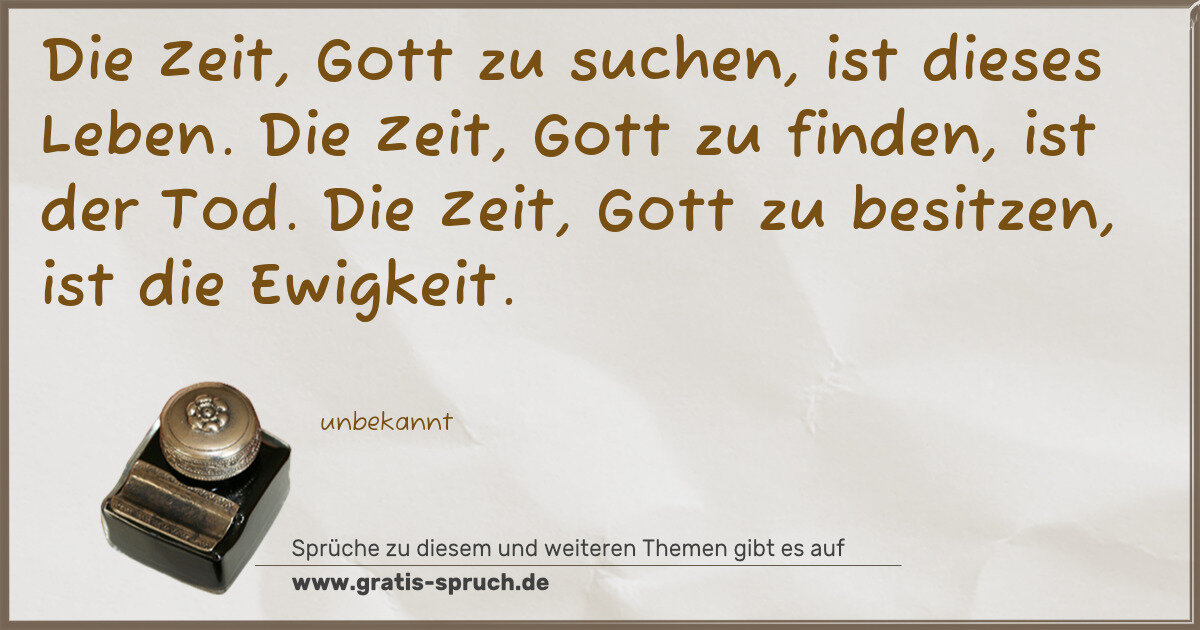 Die Zeit, Gott zu suchen, ist dieses Leben. Die Zeit, Gott zu finden, ist der Tod. Die Zeit, Gott zu besitzen, ist die Ewigkeit.