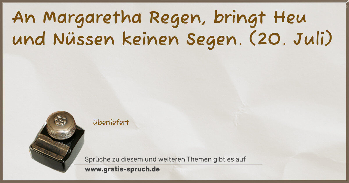 An Margaretha Regen, bringt Heu und Nüssen keinen Segen. (20. Juli)