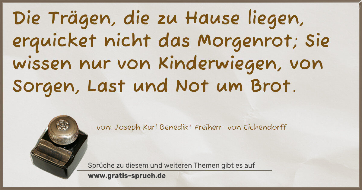 Die Trägen, die zu Hause liegen, erquicket nicht das Morgenrot; Sie wissen nur von Kinderwiegen, von Sorgen, Last und Not um Brot.