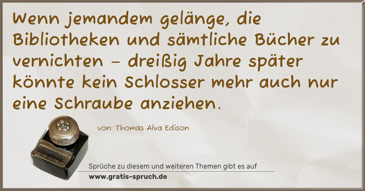 Wenn jemandem gelänge, die Bibliotheken und sämtliche Bücher zu vernichten – dreißig Jahre später könnte kein Schlosser mehr auch nur eine Schraube anziehen.