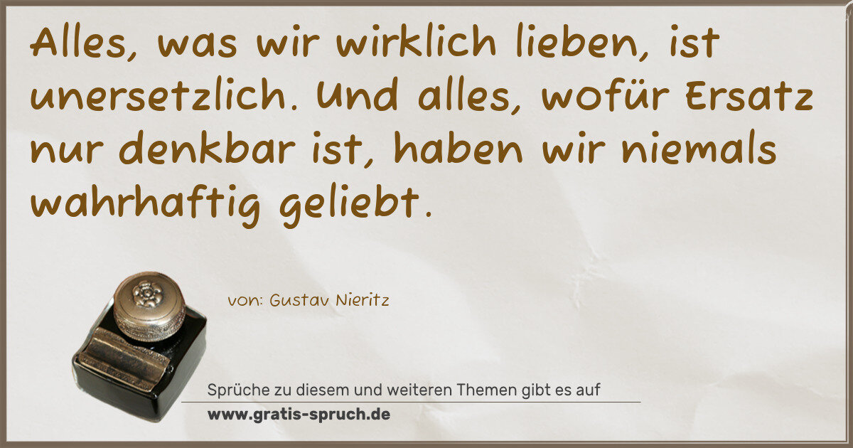 Alles, was wir wirklich lieben, ist unersetzlich. Und alles, wofür Ersatz nur denkbar ist, haben wir niemals wahrhaftig geliebt.