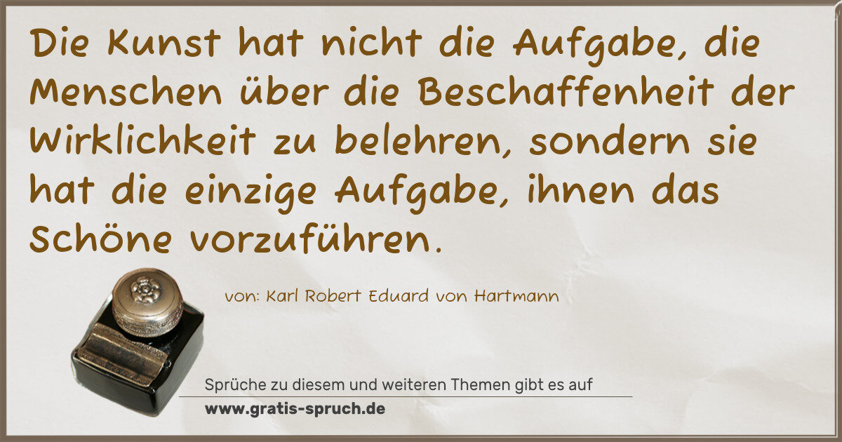 Die Kunst hat nicht die Aufgabe, die Menschen über die Beschaffenheit der Wirklichkeit zu belehren, sondern sie hat die einzige Aufgabe, ihnen das Schöne vorzuführen.
