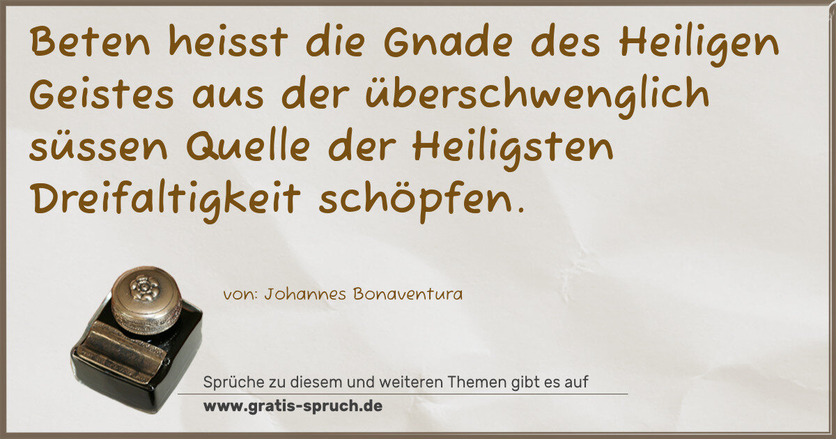 Beten heisst die Gnade des Heiligen Geistes aus der überschwenglich süssen Quelle der Heiligsten Dreifaltigkeit schöpfen.