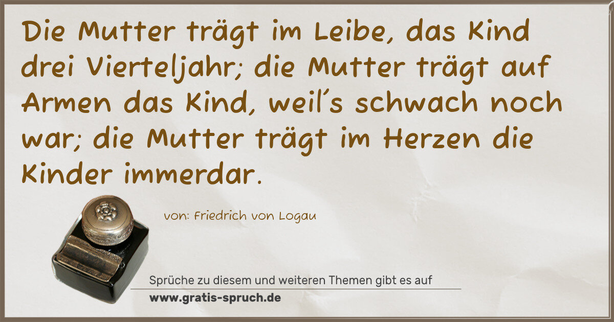Die Mutter trägt im Leibe, das Kind drei Vierteljahr; die Mutter trägt auf Armen das Kind, weil's schwach noch war; die Mutter trägt im Herzen die Kinder immerdar.