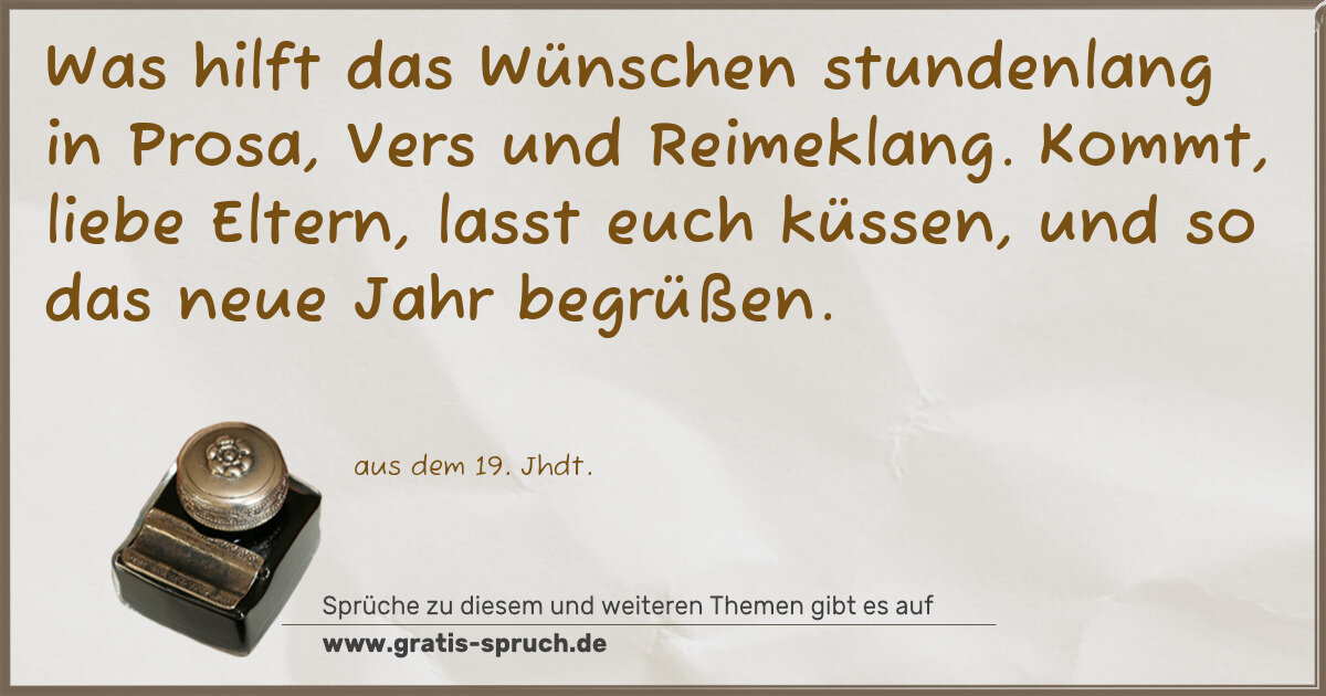 Was hilft das Wünschen stundenlang in Prosa, Vers und Reimeklang. Kommt, liebe Eltern, lasst euch küssen, und so das neue Jahr begrüßen.
