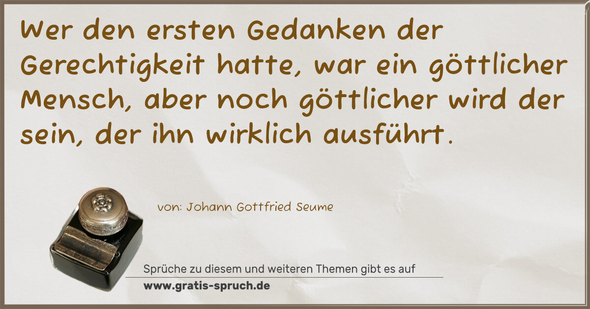 Wer den ersten Gedanken der Gerechtigkeit hatte, war ein göttlicher Mensch, aber noch göttlicher wird der sein, der ihn wirklich ausführt.