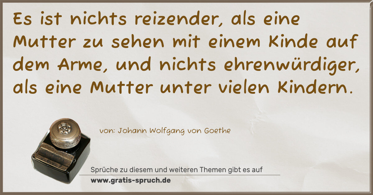 Es ist nichts reizender, als eine Mutter zu sehen mit einem Kinde auf dem Arme, und nichts ehrenwürdiger, als eine Mutter unter vielen Kindern.