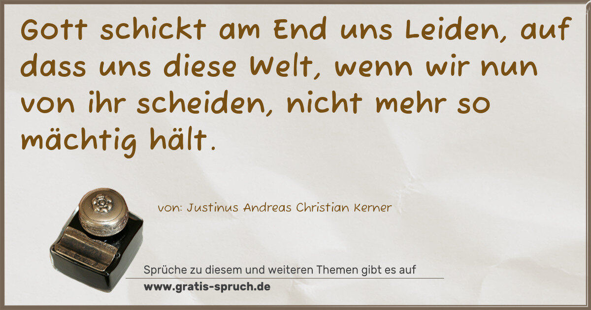 Gott schickt am End uns Leiden, auf dass uns diese Welt, wenn wir nun von ihr scheiden, nicht mehr so mächtig hält.