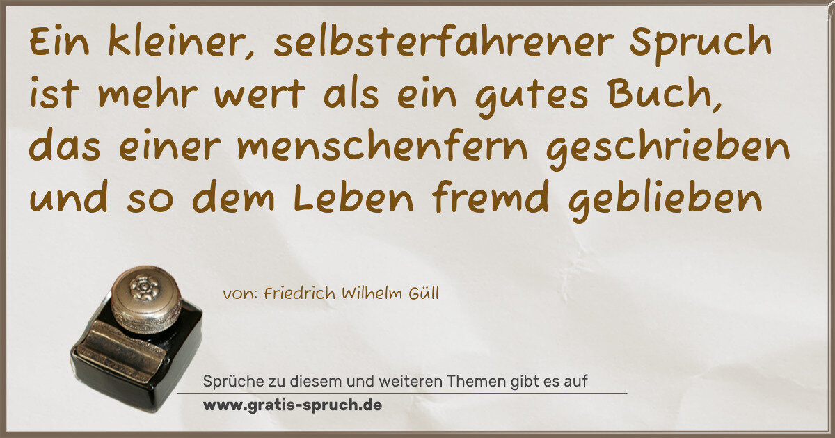 Ein kleiner, selbsterfahrener Spruch ist mehr wert als ein gutes Buch, das einer menschenfern geschrieben und so dem Leben fremd geblieben