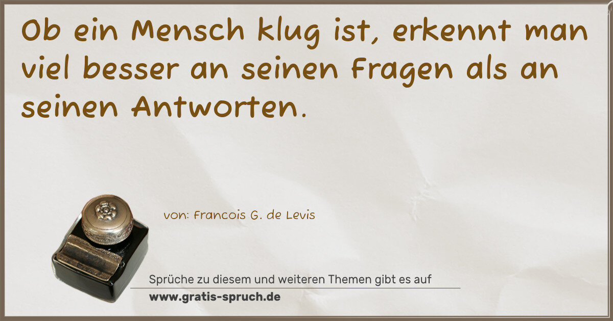 Ob ein Mensch klug ist, erkennt man viel besser an seinen Fragen als an seinen Antworten.