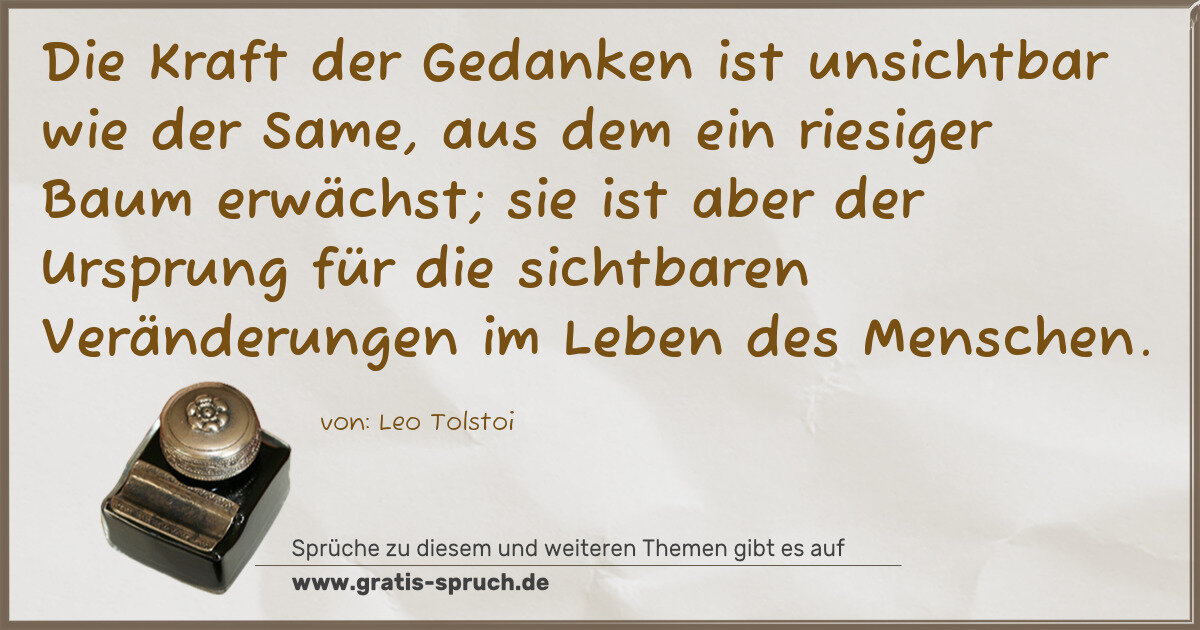 Die Kraft der Gedanken ist unsichtbar wie der Same, aus dem ein riesiger Baum erwächst; sie ist aber der Ursprung für die sichtbaren Veränderungen im Leben des Menschen.