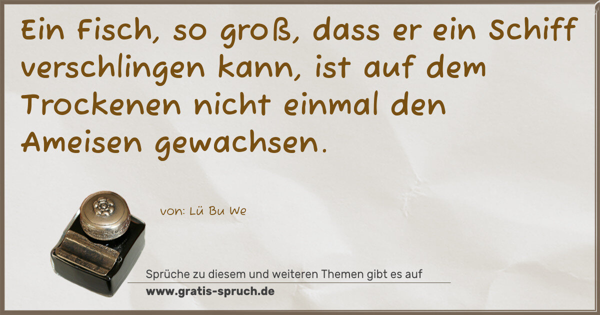 Ein Fisch, so groß, dass er ein Schiff verschlingen kann, ist auf dem Trockenen nicht einmal den Ameisen gewachsen.